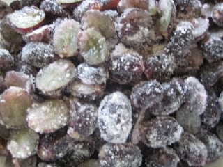 + Chia nhỏ đường và nho thành nhiều phần. Để 1 lớp nho, rồi đến 1 lớp đường và làm đến khi hết nguyên liệu (phần trên cùng nên để đường nhiều nhất và phủ hết nho)